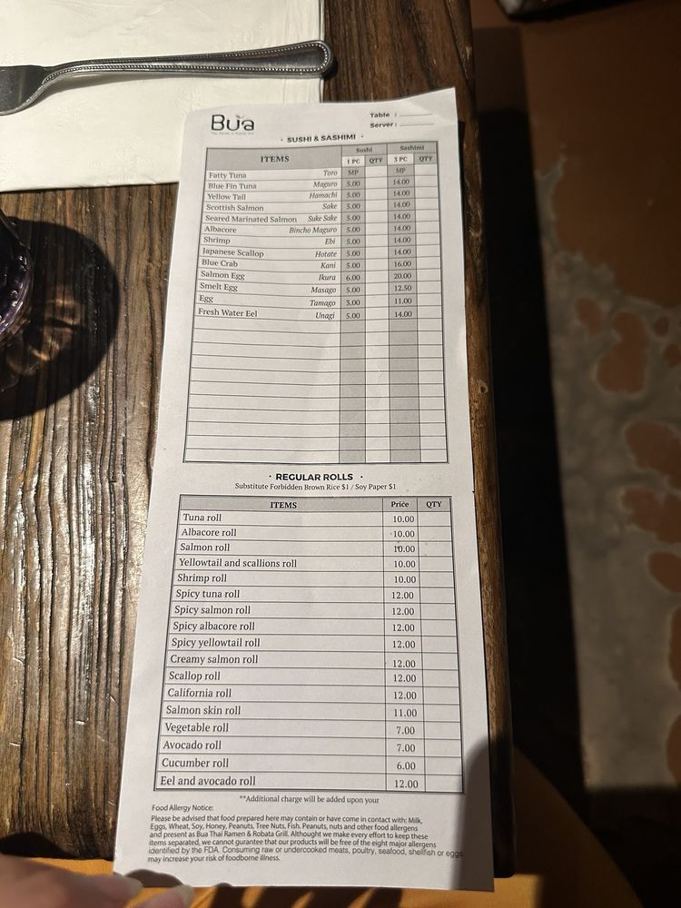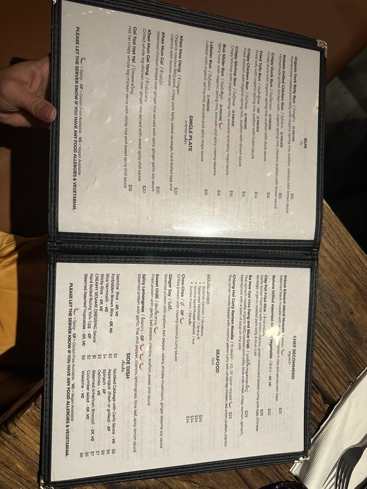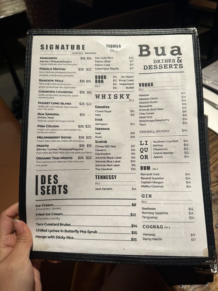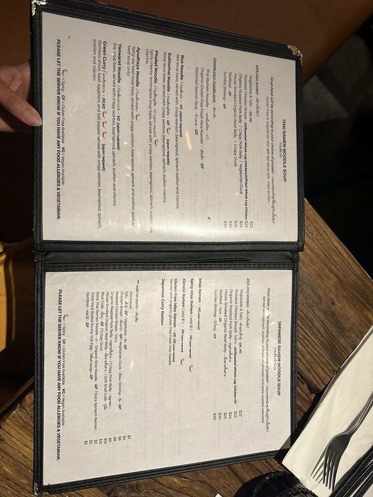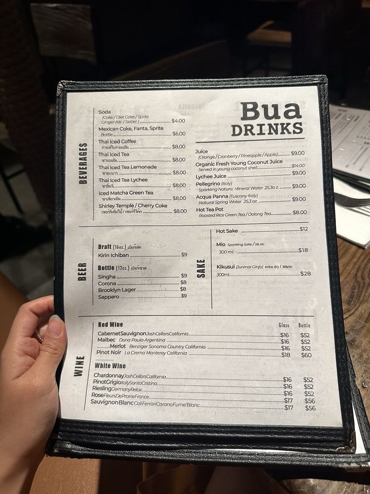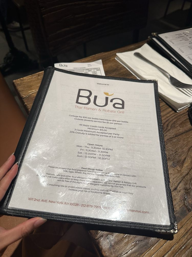 Located in New York City, Bua Thai Ramen & Robata Grill offers a unique dining experience with a blend of Thai and ramen cuisine. This restaurant caters to various dietary preferences, including vegetarian, pescatarian, and soy-free options. The menu features a range of delectable dishes like Chiang Mai curry ramen noodle, Sriracha soft shell crab, and Clay Pot Fried Rice. Customers praise the fun and aesthetically pleasing drinks served in pineapple and grapefruit casings. The ambiance is trendy and intimate, making it an ideal spot for a date night or casual gathering. With excellent service and delicious, flavorful dishes, Bua Thai Ramen & Robata Grill promises a memorable dining experience for all guests.